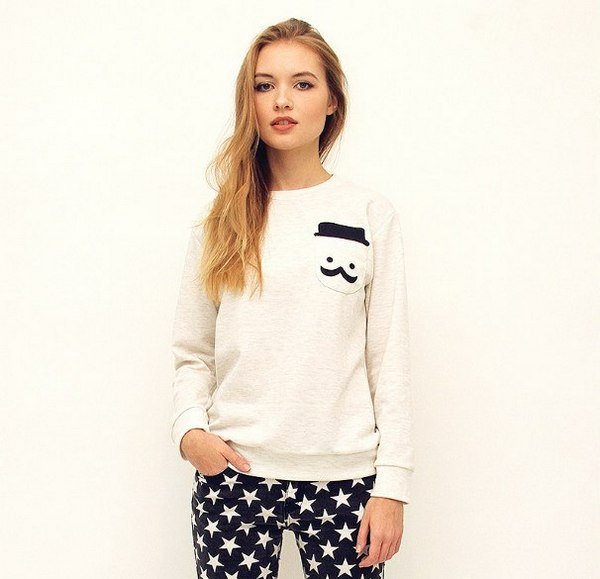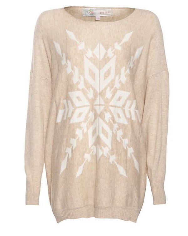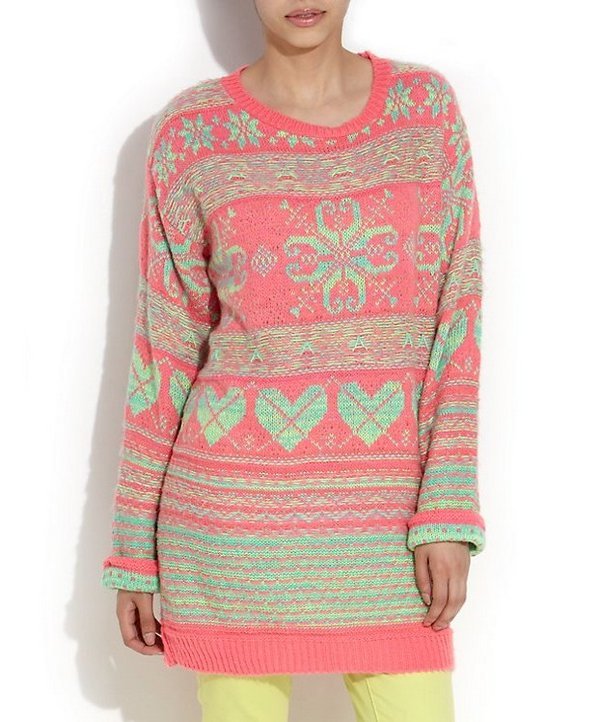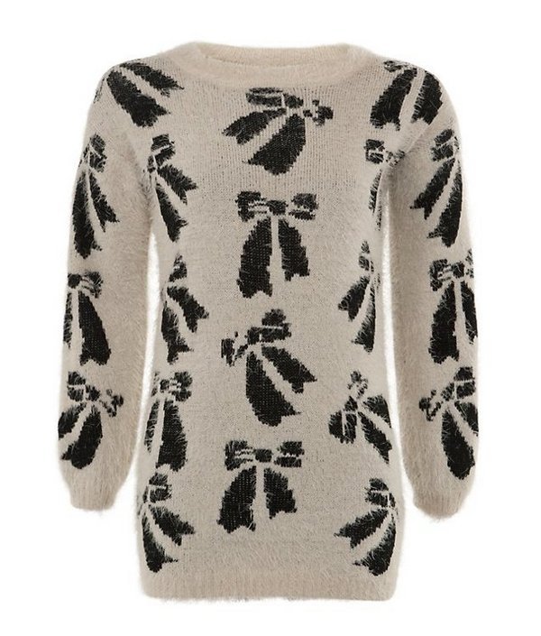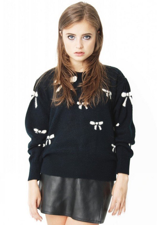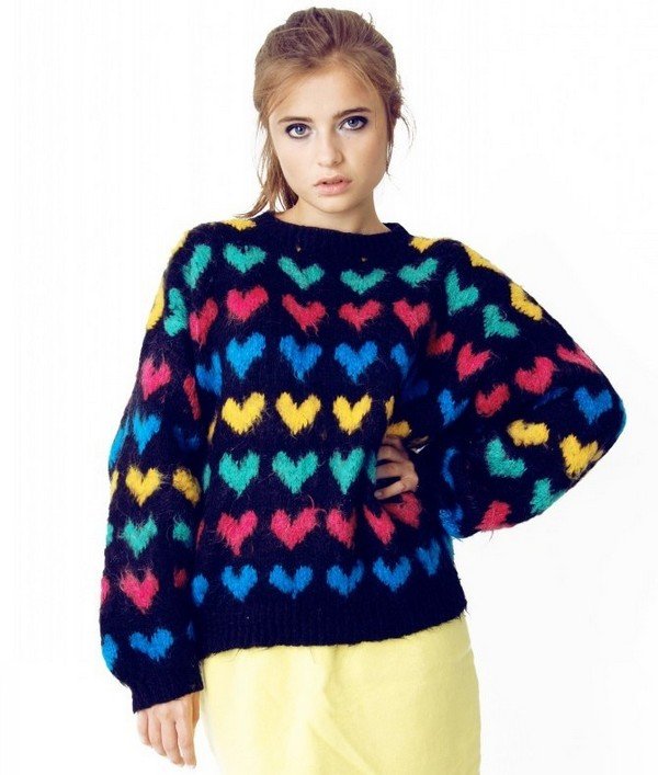 Варианты с орнаментом в стиле “мимими” – сердечками, бантиками или горошками также приветствуются в Новогоднюю ночь. К тому же, надев свитер с рисунком в виде большого красного банта, вы можете смело исполнить для любимой половинки песенку в стиле “лучший твой подарочек это я” :)
