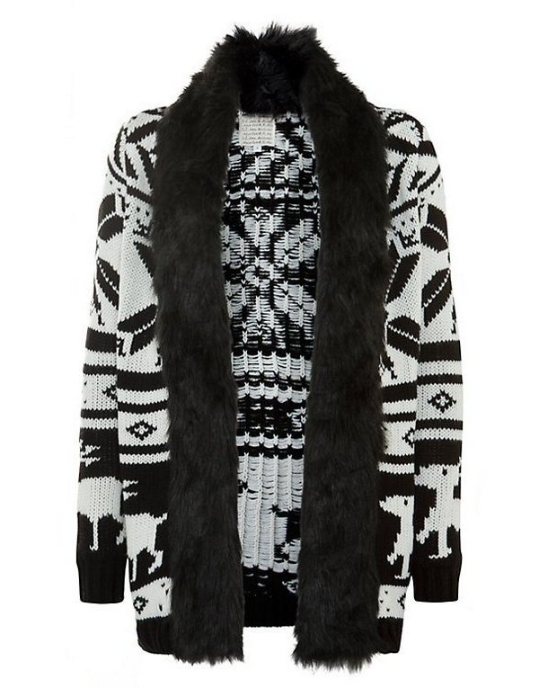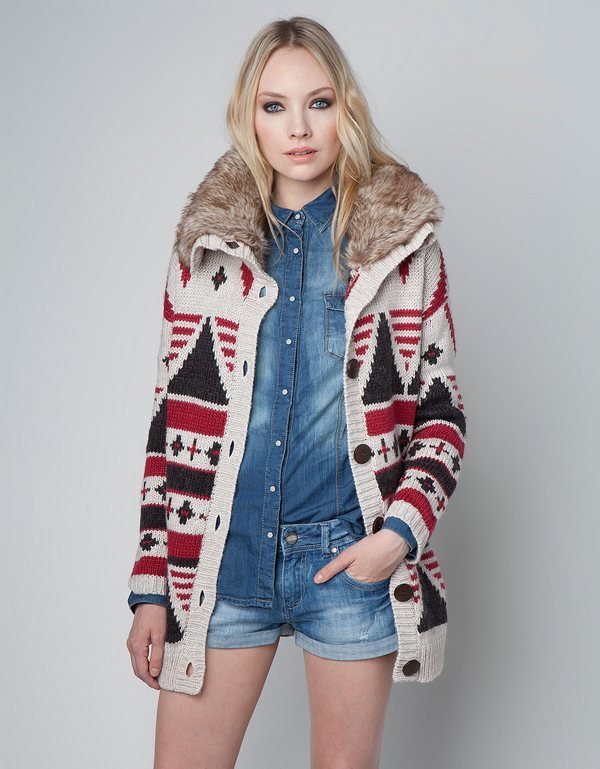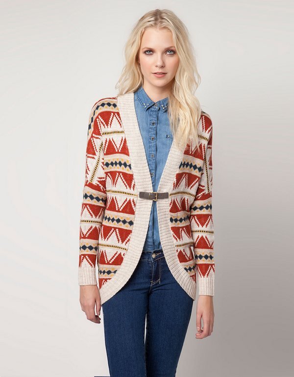 Традиционный для зимы теплый кардиган может также стать прекрасной альтернативой праздничного наряда. Чтобы еще больше прочувствовать праздничный дух и заново поверить в Деда Мороза, выбирайте варианты с этническими мотивами и разноцветным орнаментом. Такие вещи выглядят особенно уютно и мило в рамках домашнего семейного праздника.