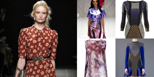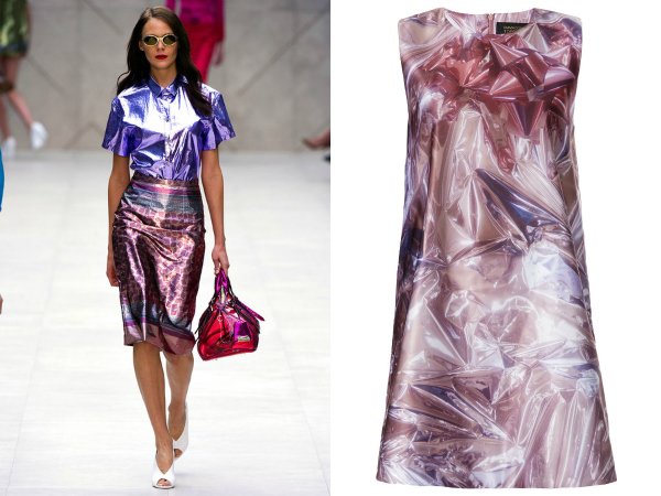 Итак, первый в нашем перечне образ из весенне-летней коллекции Burberry Prorsum, где в главной роли выступает лиловая рубашка из ткани с эффектом “металлик”. Наткнувшись на платье из капсульной коллекции EMMA COOK FOR TOPSHOP с принтом “а-ля подарочная упаковка”, именно этот образ от Burberry был первым, с чем ассоциировался данный наряд. Согласитесь, источник вдохновения Эммы Кук на лицо:)