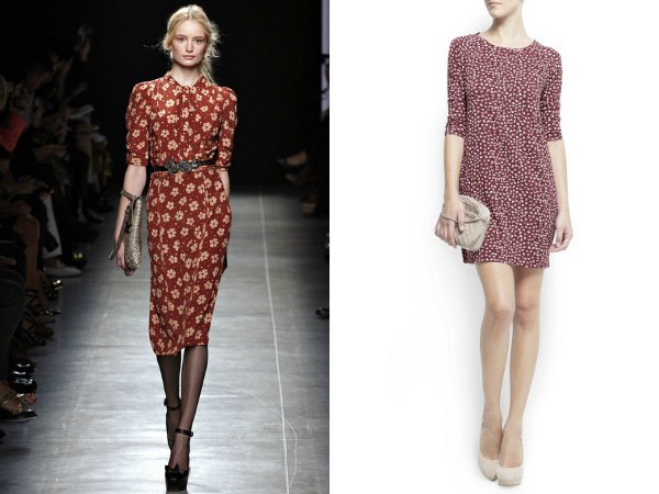 Во время последнего шопинга на уже начавшихся распродажах, увидев платье Mango в мелкий цветочный принт в бордовом цвете, мы с подругой практически одновременно объявили “А это Bottega Veneta”, вспомнив еще и выход во время показа коллекции весна-лето 2013 украинской модели Иры Кравченко. Конечно, сходство здесь на такое явное как, скажем, у Gareth Pugh и Asos, но ассоциативный ряд весьма четкий.