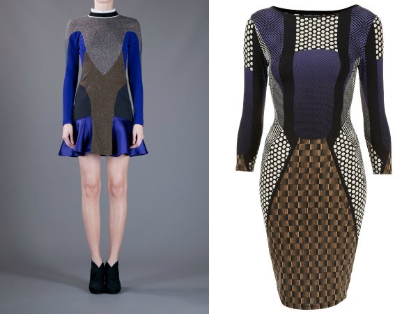 Платье-хит, платье-мечта сезона осень-зима – это лоскутное творение Стеллы Маккартни из коллекции осень-зима 2012-2013. Необычное и запоминающееся сочетание цветов и фактур, волнистый трапецевидный подол платья, а также его практичность и красота сделали эту вещь культовой. Хоть платье Topshop и отличается фасоном, принт и цветовое сочетание делают данную демократичную вещь настоящим хитом.