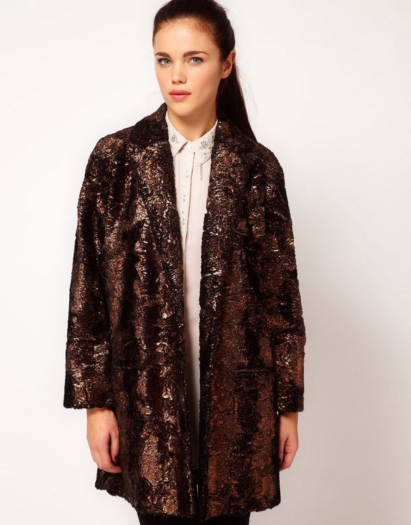 пальто из искусственного меха с эффектом “металлик” River Island, около 500,00 грн