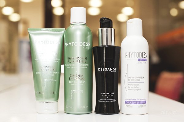 Shampooing Au Bambou,  Creme de Jour Or Carite, все – Phytodess; Inspiration Douceur Elixir Capillaire Matiere Substance, Dessange;  Primer Lotion, Phytodess
