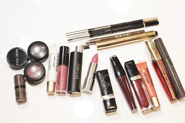 Rouge a Levres Lipstick, terre d`Oc; Creamy Concealer, Bobby Brown; Eyeshadow, MAC; Happy Gloss, Dessange; Gloss City Chic Lip Lacquer, Camille Albane; Pro Illumination Tweezers, La Tweez; Rouge Dior Lipstick, Dior;  L`absolu Creame de Brilliance, Lancome;  Rouge Dior Creme de Gloss, Dior; Happy Gloss, Dessange; Volume Million Lashes Mascara, L`Oreal; Organic Mascara, terre d`Oc; Touche Eclat, YSL; Le Crayon Sourcils, Crayon, все – Paris Berlin