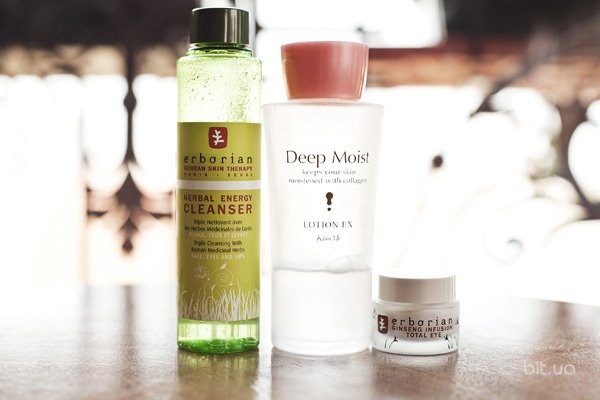 Herbal Energy Cleanser, Erborian; Deep Moist Lotion, Isehan; Ginseng Infusion Total Eye, Erborian