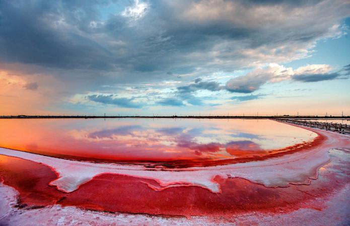 Вода в озере – розово-сиреневая, а косметику на основе целебных грязей продают в небольшом магазине рядом. Летом берега пересыхают и покрываются тонкой соляной коркой, что делает пейзаж еще более необычным и живописным.