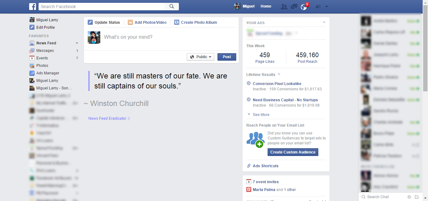 Плагин для браузера Chrome, который после установки отключает вашу ленту новостей на фейсбуке. Вы больше не увидите огромного количества постов о погоде на улице, новой правительственной зраде и прочем, которые так бездарно сжигают ваше время, отвлекают внимание и мешают работать. Вместо этого News Feed Eradicator будет подсовывать вам какую-нибудь мотивирующую цитатку великих – от Уинстона Черчилля до древнегреческих философов. Впрочем, можно вклеить и любую другую цитату по собственному желанию. На работе фейсбучного мессенджера установка плагина никак не отображается.