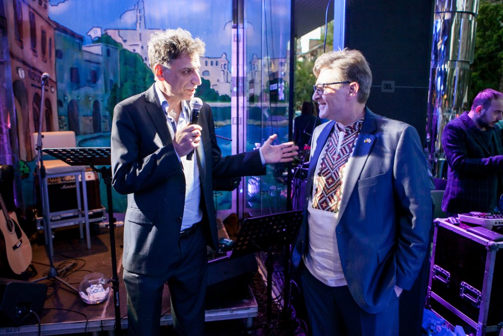 Перед гостями выступил посол государства Израиль в Украине Элиав Белоцерковский и организатор вечеринки – владелец Aroma Espresso Bar в Киеве Яаков Лившиц.