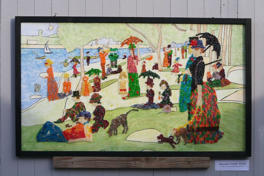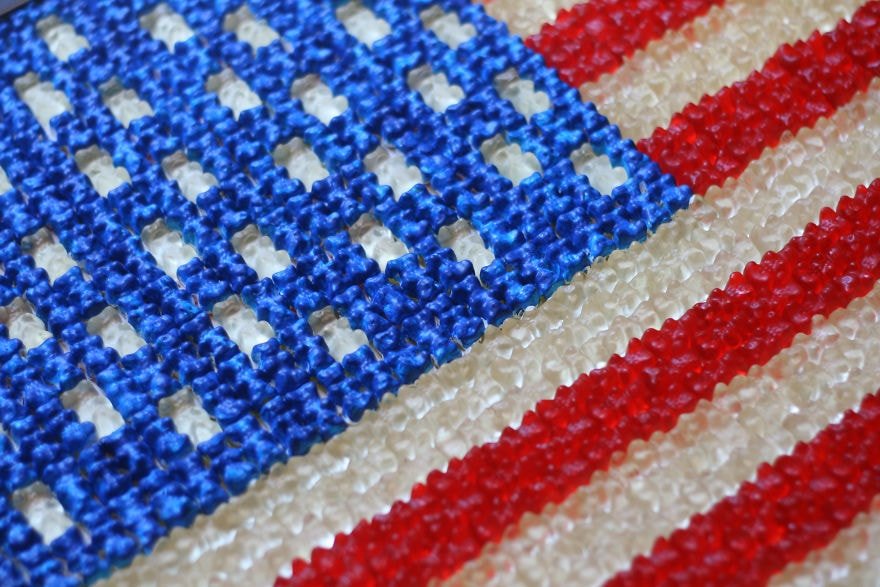 Мэлисса Рэйчел Блэк из Портланда уже 7 лет делает картины из желейных “Мишек Гамми”. Кроме оригинального подхода к творчеству, некоторые работы Мэлиссы несут глубокий смысл с политическим подтекстом.