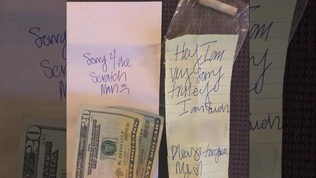 В Колорадо женщине поцарапали машину. Через некоторое время она обнаружила конверт с запиской, 40 долларами и половиной косяка.