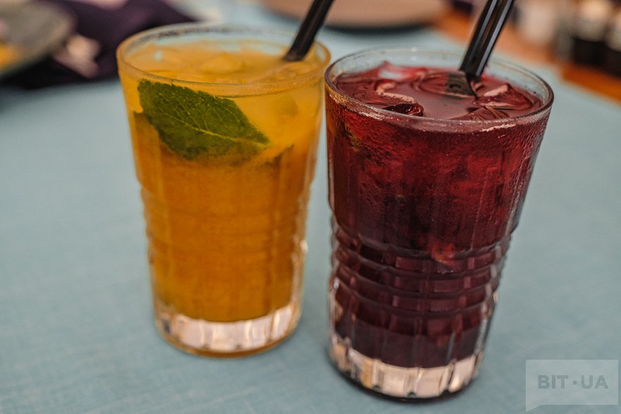 В ресторане есть и винная (вина Старого и Нового Света), и общая алкогольная карта, а также безалкогольные напитки: кофе, чай, фреши и лимонады собственного приготовления. К некоторым напиткам можно добавить шелковичный сироп — например, к проссеко.