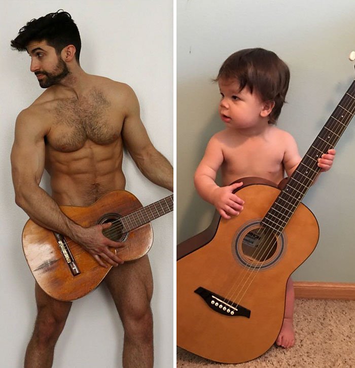 “Все началось, когда я однажды не смогла надеть на сына рубашку, – рассказывает Катина Бехм, мама малыша и сестра Аристотеля. – Это выглядело, как обложка какого-то женского романа. Я посмеялась и решила сделать фотографию, а после поняла, что у моего брата Ариса есть похожая. Я отправила обе фотографии семье и спросила, кто круче.”