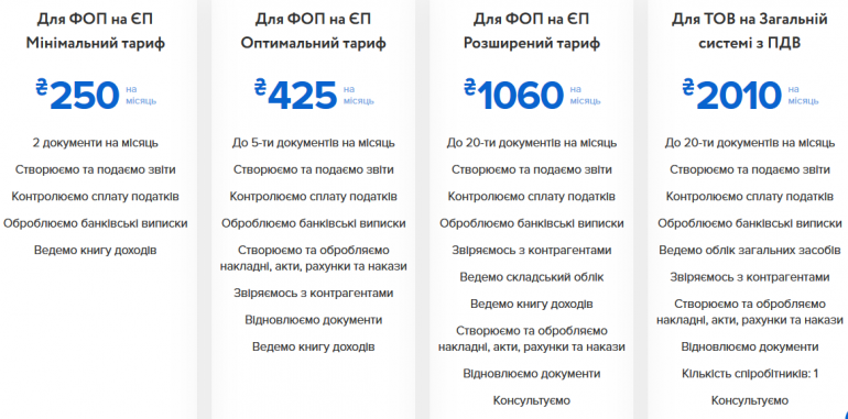В честь запуска сервиса первый месяц его использования – бесплатный. Для ФЛП-плательщиков единого налога доступны три тарифа: минимальный – 250 грн/мес, оптимальный – 425 грн/мес и расширенный – 1060 грн/мес. Предпрнимателям на общей системе налогообложения услуги mTax обойдутся в 2010 грн/мес.