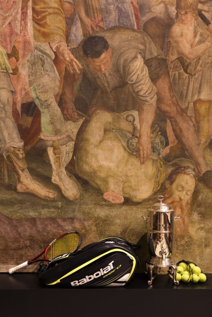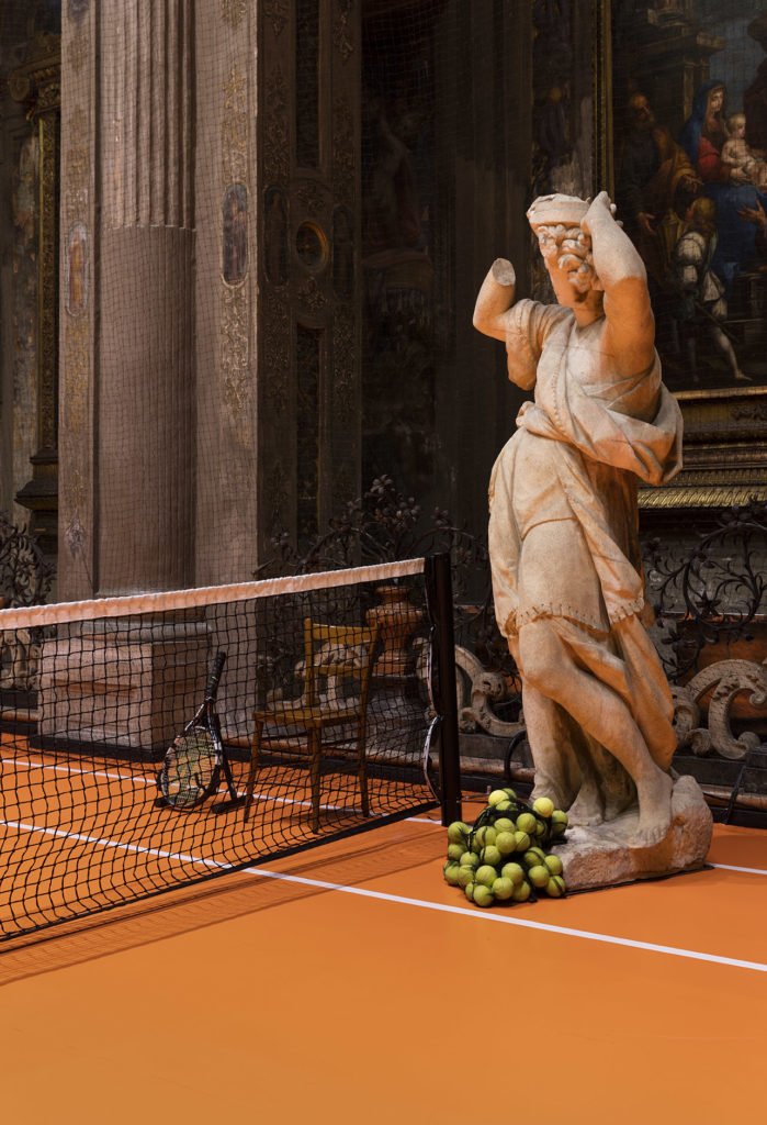 Художник Асад Раза превратил бывшую церковь XVI века в Милане в теннисный корт с яркими оранжевыми полами, сетями, персональными тренерами и холодным жасминовым чаем. Сам теннисист хочет «переориентировать спорт как отражение важности непроизводительной деятельности в обществе, ориентированном на работу».