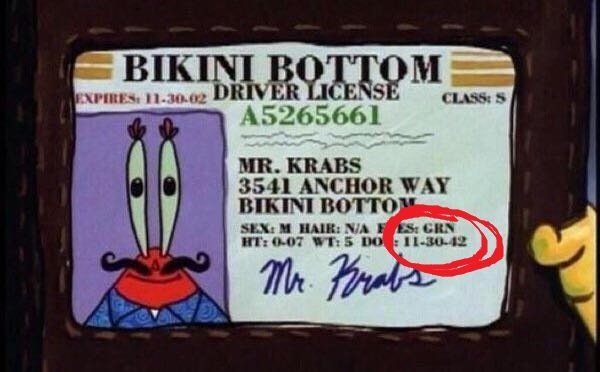Да-да, Мистер Краббс родился 30 ноября 1942 года. И вот вам доказательство: