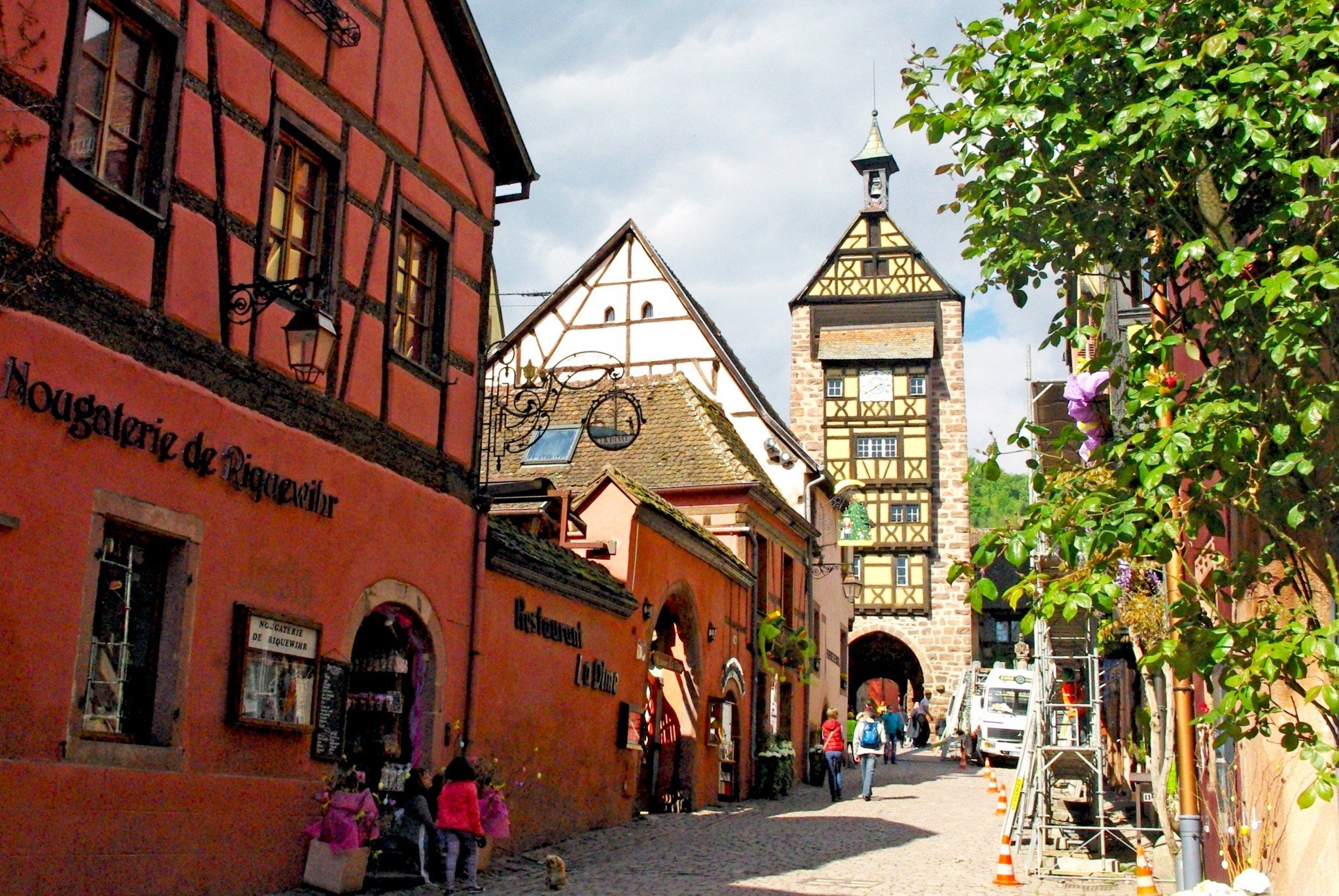 Средневековый городок Риквир (Riquewihr) сохранил свою первозданную атмосферу. Здесь можно встретить практически все виды эльзасской архитектуры: фахверковые дома, украшенные скульптурами, ориэли (балконы на фасаде здания, соединяющие несколько этажей), а также внутренние дворики с фонтанами и колодцами.