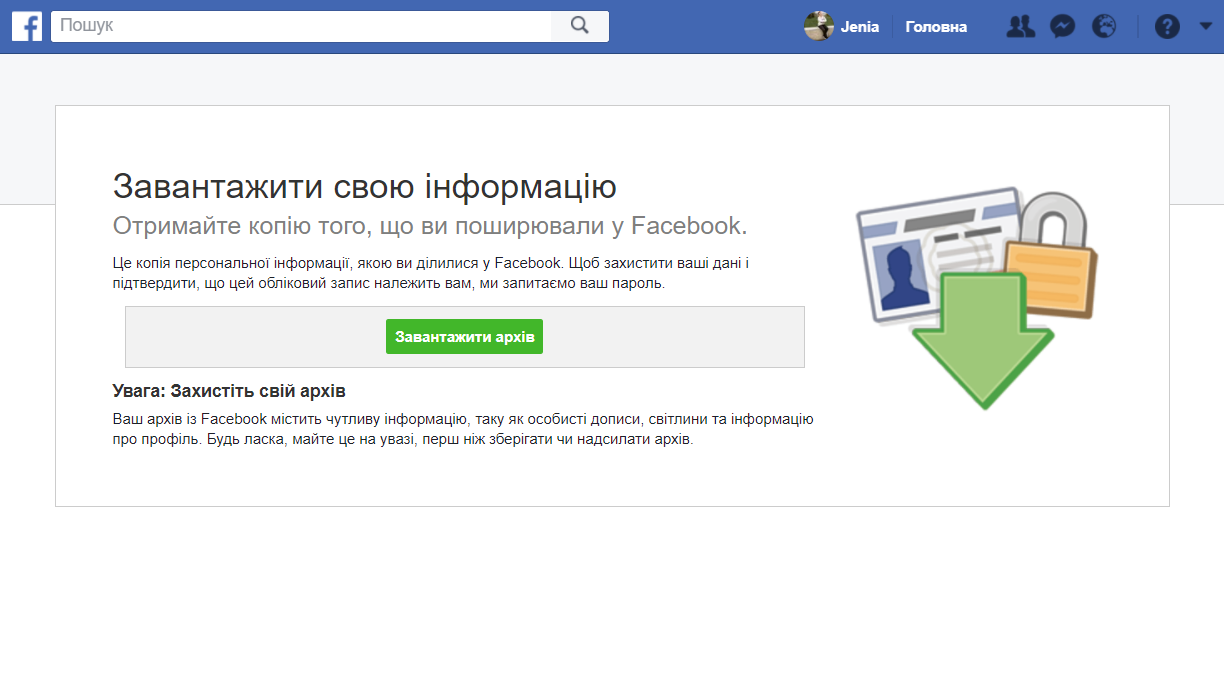 8. Facebook предложит скачать архив с вашими данными.