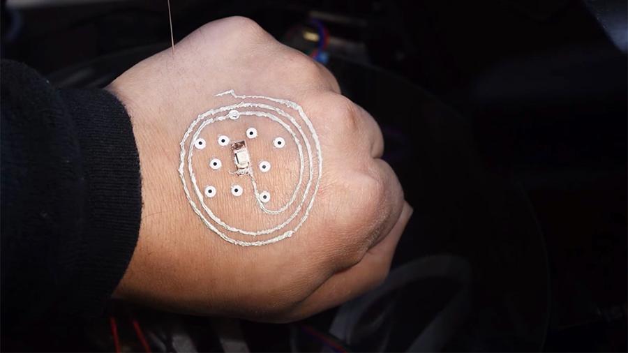 Работу своего 3D-принтера американцы продемонстрировали на коже руки, создав на ней светодиод с контуром, который может получать энергию от внешнего источника.