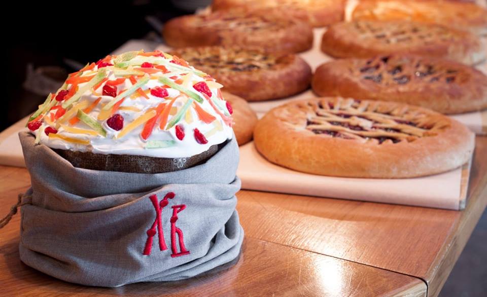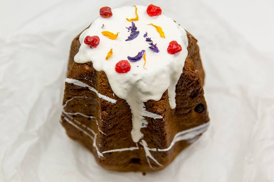В пекарне Chef Bakery готовят на Пасху три вида панеттоне – традиционных итальянских кексов. Есть с изюмом, апельсиновыми цукатами и декором из белого шоколада и меренги; есть с изюмом с апельсиновыми и вишневыми цукатами, украшенные зеркальной глазурью и цветочными лепестками; и есть с шоколадными дропсами в марципановой глазури.