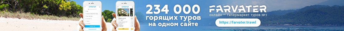 Онлайн гипермаркет туров Farvater.travel позволит вам найти, забронировать и оплатить тур онлайн прямо на сайте.