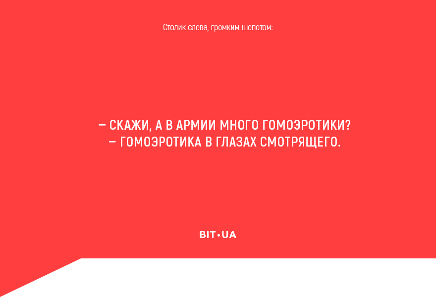 Мы не узнаем, что говорил советский человек до, во время и после коитуса, но решили узнать, какие диалоги сопровождают интимную близость тех, кто живет в одном с нами городе. Редакция bit.ua собрала сексуальные афоризмы и интимные диалоги знакомых (конечно, женатых, ведь до свадьбы ни-ни) для культовой рубрики «Подслушано».