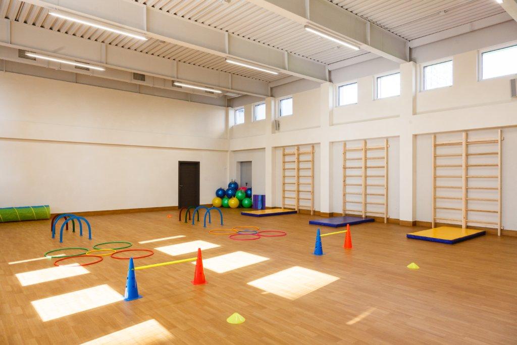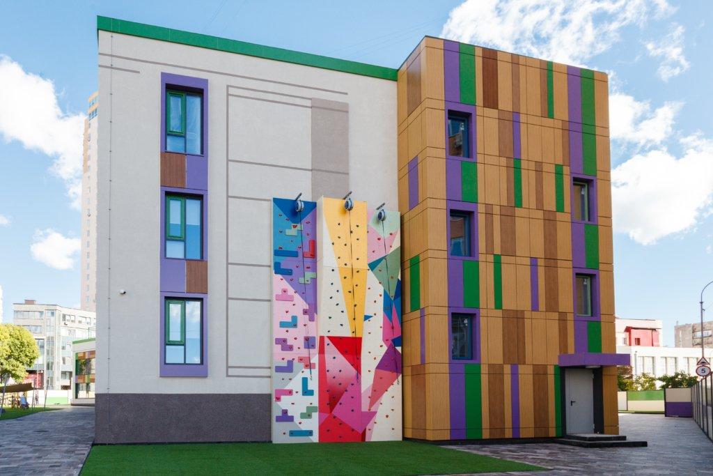 - Спортплощадка – это отдельная тема. В школе их целых три (во дворе, на крыше, спортзал в помещении), а еще танцевальная студия и – внимание! – собственный школьный скалодром!
