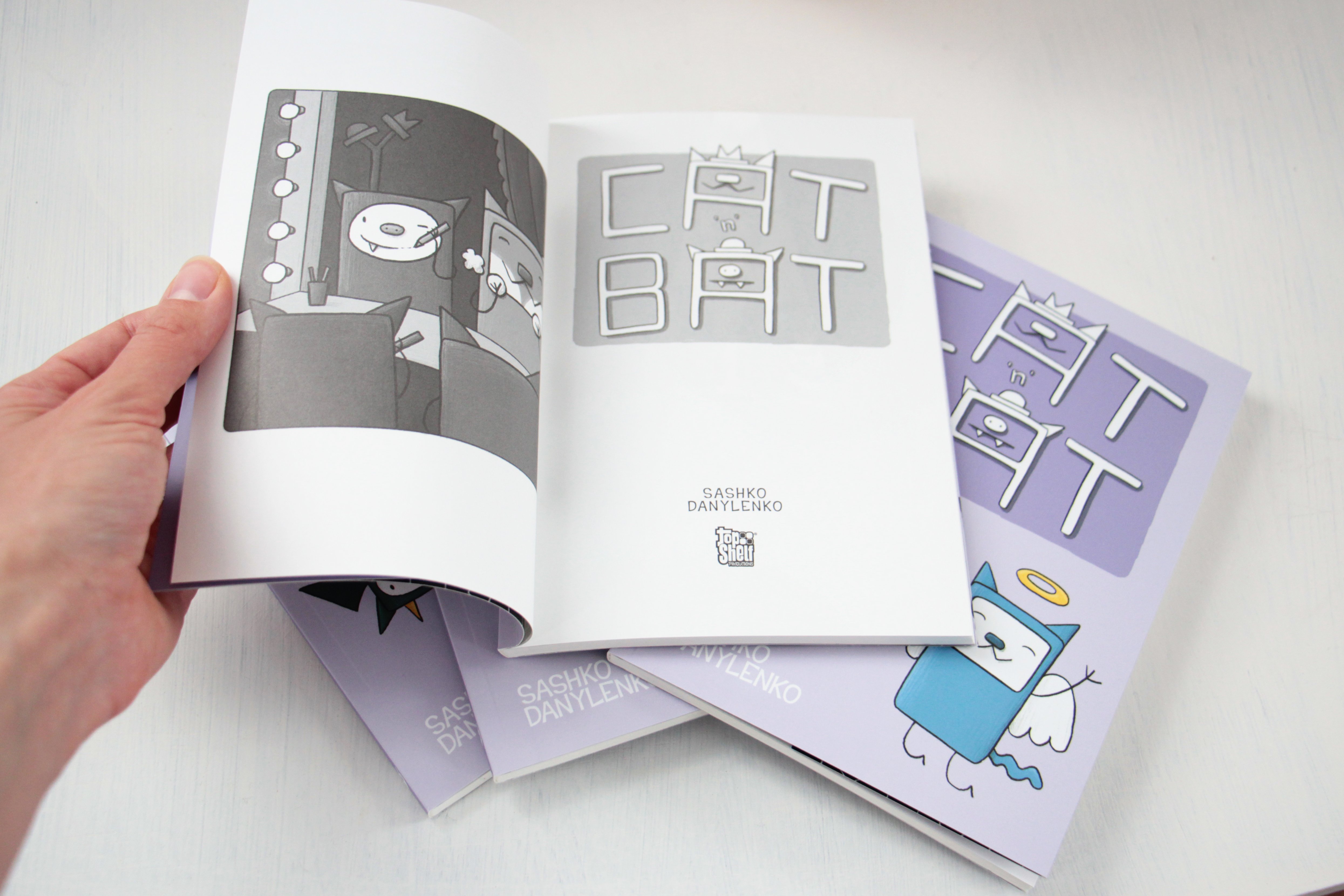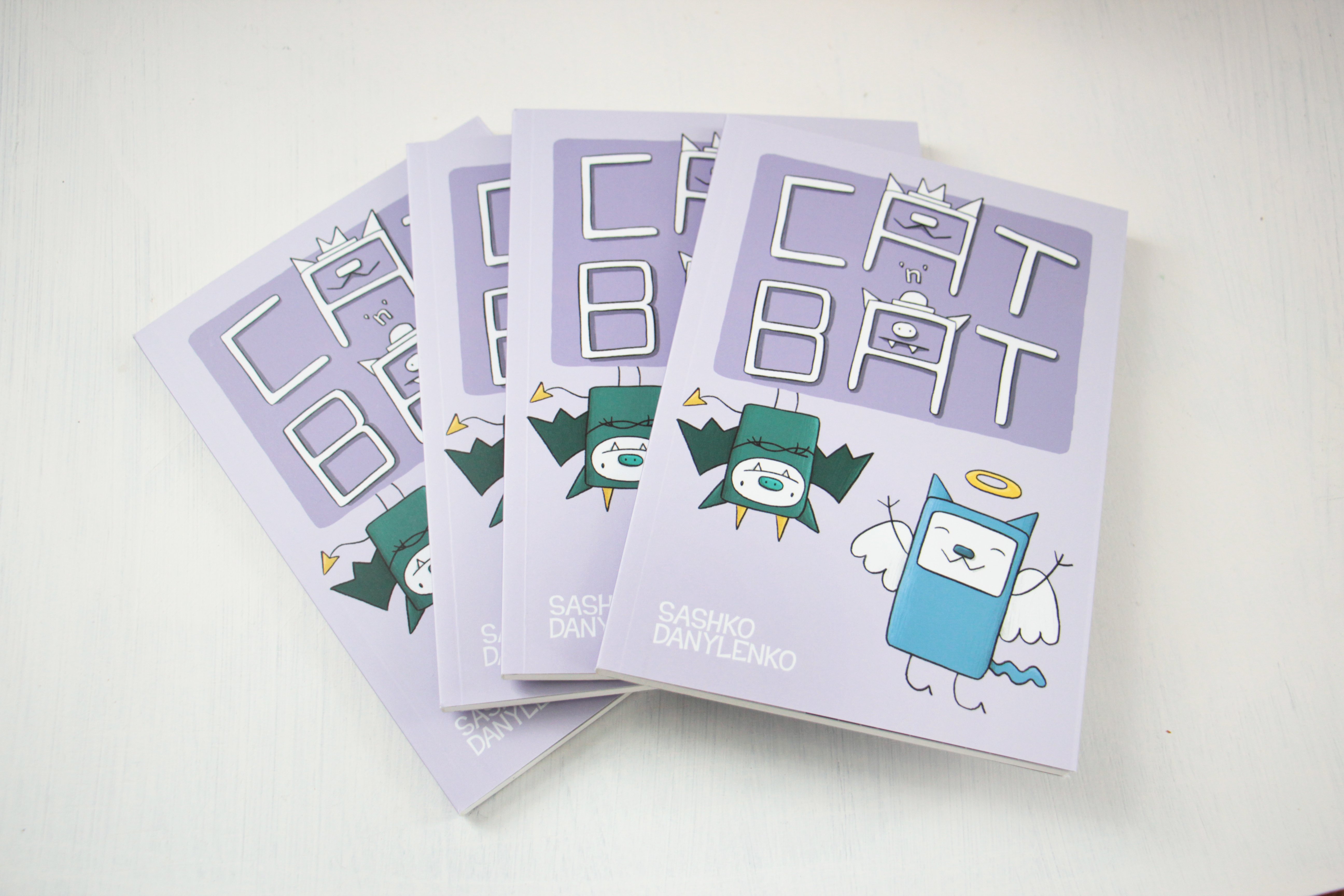 Для мене це був новий формат роботи, бо звик працювати з паперовими малюнками для анімації, але для книги це було б незручно. Спробував почати малювати на графічному планшеті, але і це було незручно. Ідеальним інструментом виявився Айпед Про. На ньому все і малював. Окрім книжки ми запустили лінію сувенірних товарів і зробили маленьку гру. Можна побігати Котом по цвинтарю на сatnbat.com.