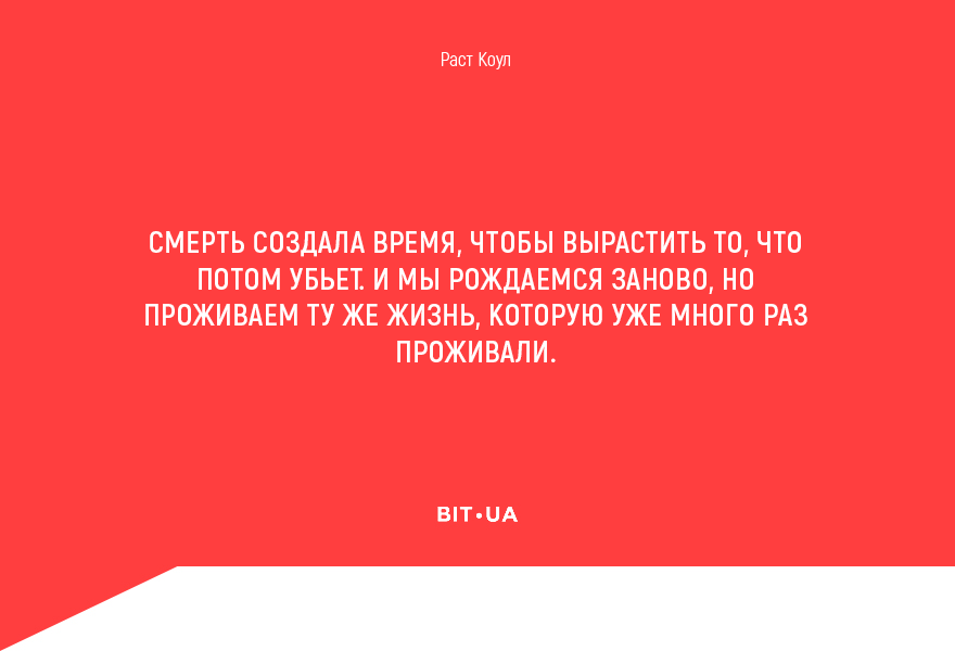 Человек – самое жестокое животное на планете. Герой Мэттью Макконахи Раст Коул – то же животное, которое, помимо своей сложной работы, пытается разобраться во всем окружающем. И, словно искрами с точильного станка, выдает нам жизненные истины, одну за другой. Пройдя сложный путь, Расту Коулу мы доверяем больше, чем рекламным слоганам и хеппи-эндам мелодрам. Потому что он наш парень.