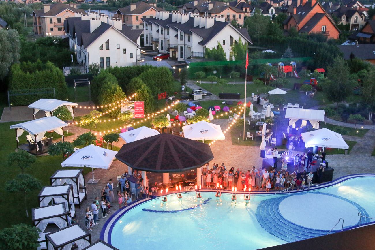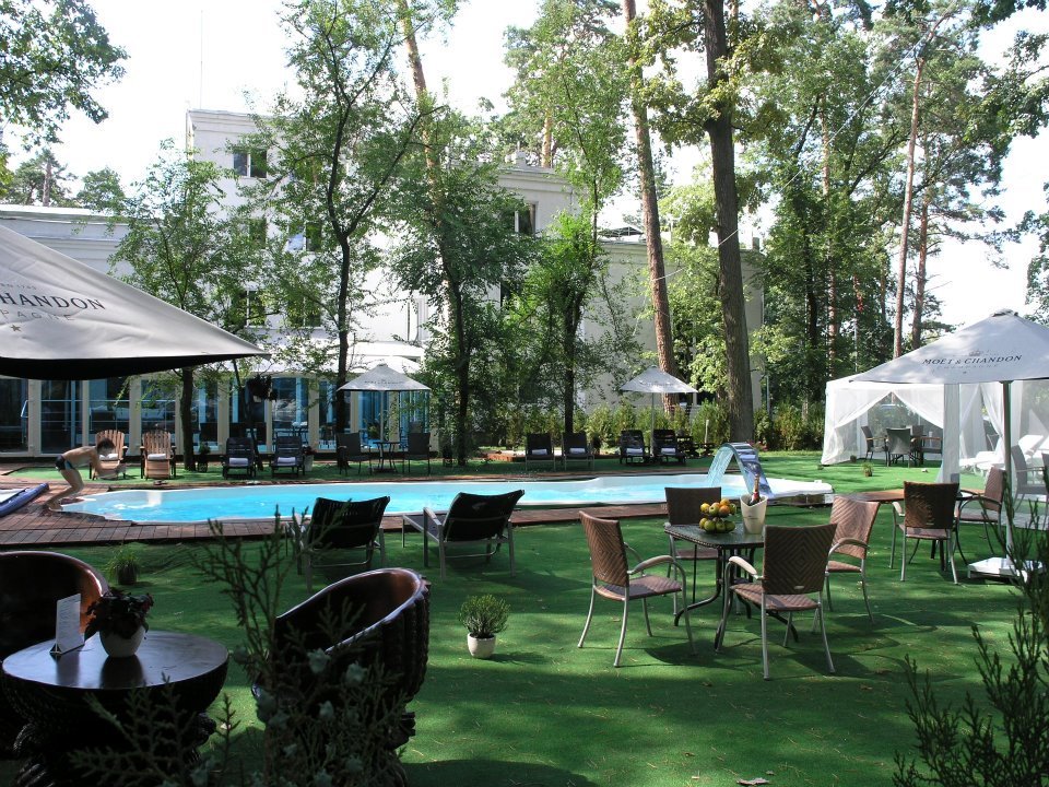 Гордость Queen Country Club – 26-метровый бассейн с pool-баром, джакузи и шезлонгами (аренда лежака – 500 гривен в сутки). Благодаря подогреву осенью, весной и летом температура воды составляет комфортные 28 градусов. Также на территории загородного комплекса расположен ресторан с блюдами европейской, восточной и украинской кухни. Queen Country Club подходит не только для шумных вечеринок, но и для отдыха с детьми: в ресторане есть няня и специальное детское меню с сырниками, пюре, куриными котлетами и мороженым.