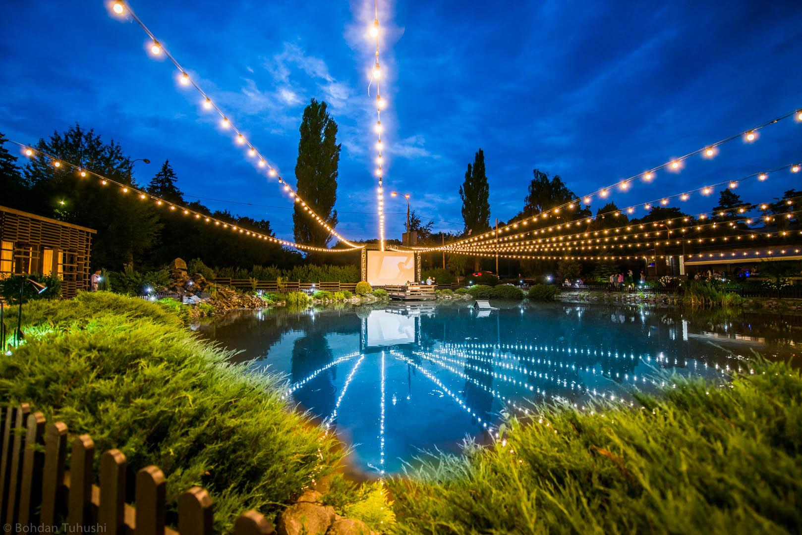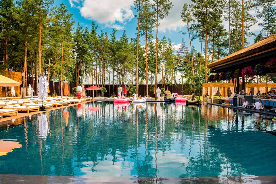 В этом загородном комплексе расположены 9 хоббит-хаусов с террасами, парная баня, мангал, ресторан с блюдами украинской и европейской кухни и все для пляжного отдыха – шезлонги (149 гривен в день), шатер-бунгало (399 гривен в день) и индивидуальный сервис (499 гривен за 3 часа). В Dacha Club есть и предложения для молодоженов: 5 банкетных залов, 2 летние террасы, 2 банкетные беседки, лаундж-зона.