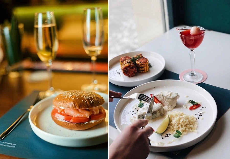 В меню сделан упор на бейглы: есть классический бейгл с подкопченным лососем и крем-сыром, есть с прошутто, бри и луком фри, а также бейгл с курицей и сладкие бейглы – с нутеллой или джемом. Также в меню можно найти салаты, закуски, несколько основных позиций, яблочный пирог на десерт, а также большой выбор авторских коктейлей.