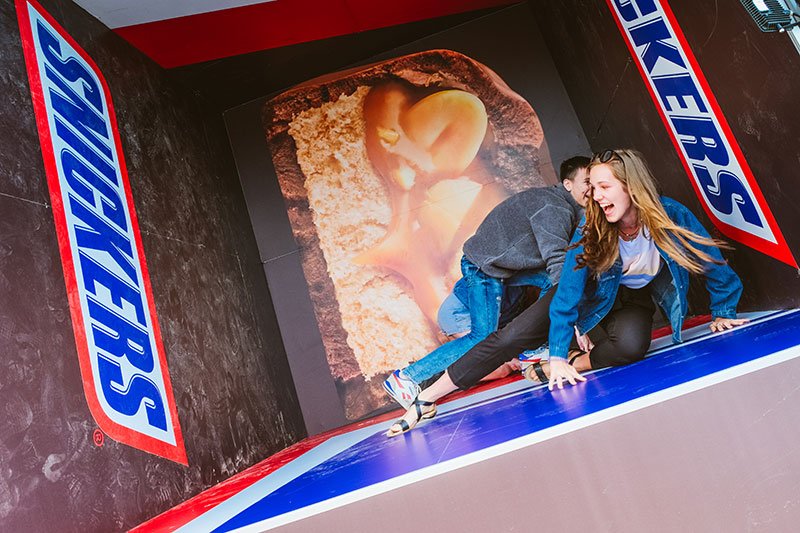 Креативники бренду створили 4 зони на території фестивалю, які залучали відвідувачів до інтерактиву. 8-метрова вежа «SNICKERS® SKALODROM», з якої можна було стрибати на величезний надувний «снікерс», рухомий «SELFIE Cube», фотозона «SNICKERS® ARCWAY» та лаунж зона, де можна було відновити сили та підзарядитись для нових звершень.