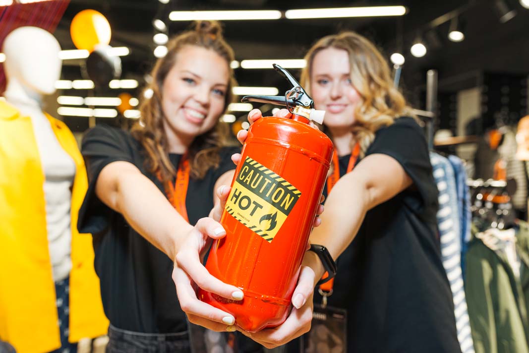 Нова рекламна кампанія буде реалізована через активності в магазинах і торгових центрах Києва. Відтепер свої покупки в мережі ти можеш забрати в термостійкому пакеті з наклейкою «CAUTION! HOT!». І щоб кожен клієнт пам’ятав про «вогняну» акцію, весь персонал носитиме фірмові червоні пов’язки чергових, щоб стежити за пожежною безпекою в магазинах. Також у магазинах будуть організовані спеціальні зони з вогнегасниками, де ти зможеш зробити палкі фото для свого Instagram.