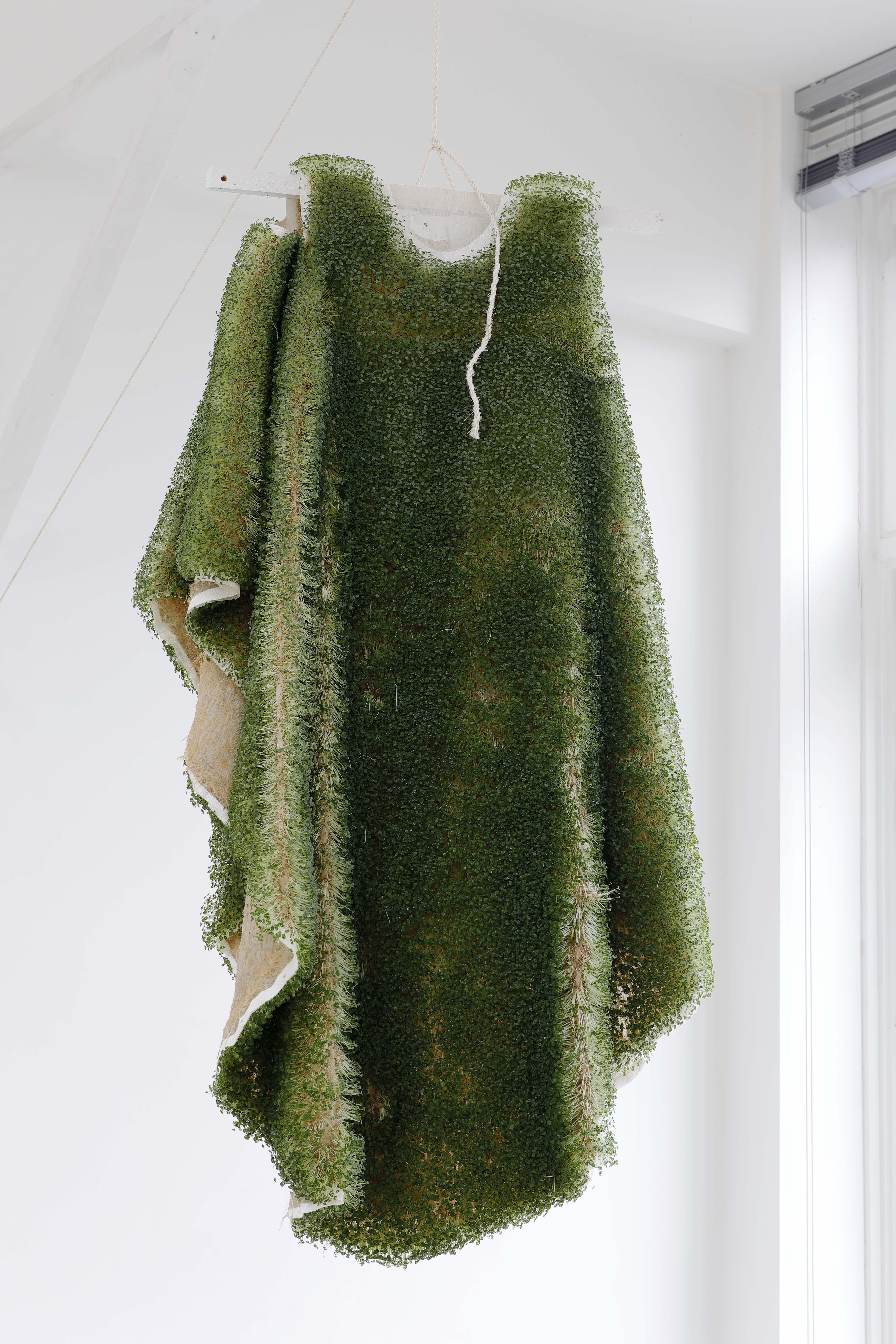 Випускниця знаменитої Академії дизайну в Ейндговені виростила хутро із пророщеного насіння чіа. Ідея проєкту – переосмислити статус одягу та спосіб взаємодії з ним. На противагу бездумному споживанню речей дизайнерка пропонує цілком інакші стосунки. Уявіть плащ або сукню, які ви вирощуєте, наче живу істоту, дбаєте про неї, оберігаєте від пошкоджень, гуляєте в такому одязі під дощем, щоб поливати паростки. Така нова концепція одягу ставить під сумнів позицію людини як центру екосистеми та провокує нове усвідомлення свого місця у світі.