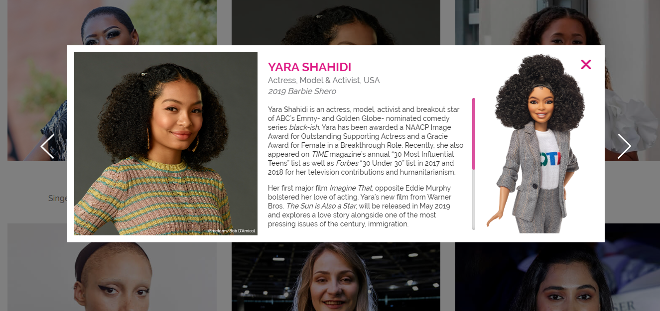 Колекцію з мексиканською художницею Фрідою Кало, американською режисеркою Петті Дженкінс («Чудо-жінка»), авіаторкою Амелією Ергарт, математиком в NASA Кетрін Джонсон та іншими моделями доповнили мініатюрні копії японської тенісистки Наомі Осаки, британської моделі Адво Абоа, китайської фотографині Чень Мен, американської актриси і активістки Яри Шахіді, бразильської серфінгістки Майї Габейру, а також російської гімнастки Ляйсан Утяшевої.