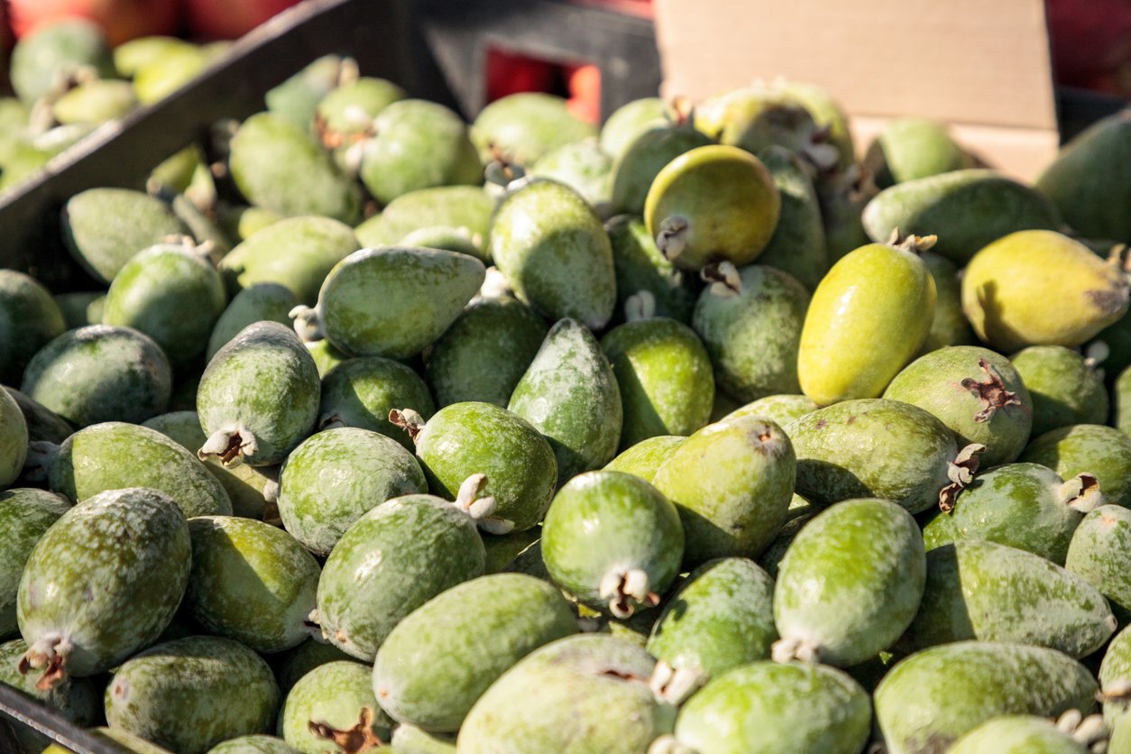 У листопаді беріть на ринках фейхоа — поки вона ще по 80-100 гривень за кілограм. Бо потім вона буде, але ціни на неї зростатимуть у геометричній прогресії: взимку ціна на фейхоа коливається від 300 до 800 грн за кіло. Шкірка фейхоа тверда й терпка, м’якіть — соковита і м’яка. На смак і запах фейхоа нагадує щось середнє між полуницею і ківі, а деяким відчуває ще й присмак ананаса.