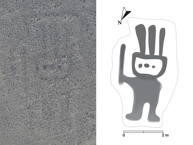 Один з малюнків був виявлений лише в 2019 році за допомогою штучного інтелекту IBM Watson Machine Learning Community Edition, який склав воєдино розрізнені фрагменти ліній. Він невеликий, всього п’ять метрів заввишки, і на ньому зображена гуманоїдна фігура, яка тримає тростину.