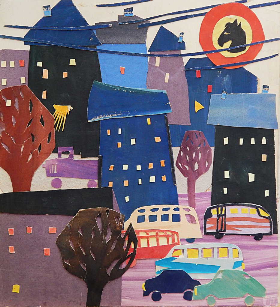 4. Рибачук Ада На візнику. Перехрестя не переходити. Ескіз мозаїчного панно для інтер’єру Київського центрального автовокзалу. У співавторстві з В. Мельниченком