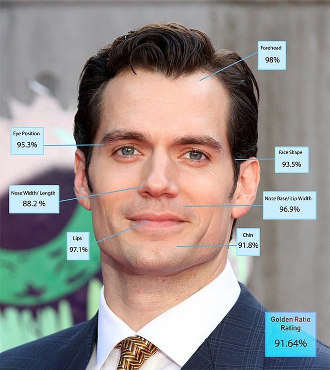 При цьому найкраще підборіддя у Девіда Бекхема (98,6%), найкращий ніс – у Раяна Гослінга (99,2%), а найкращий лоб і очі – у відьмака Генрі Кавілла (98% і 95,3%).