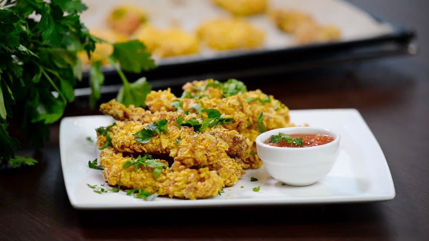 Якщо захотілося чогось шкідливого та смачненького. Ці стріпси виходять навіть смачнішими, ніж із закладу – домашні ж. А ще не такі шкідливі, бо їх потрібно не смажити, а запікати в духовці. До речі, за таким же рецептом ви можете приготували крильця та ніжки а-ля KFC.