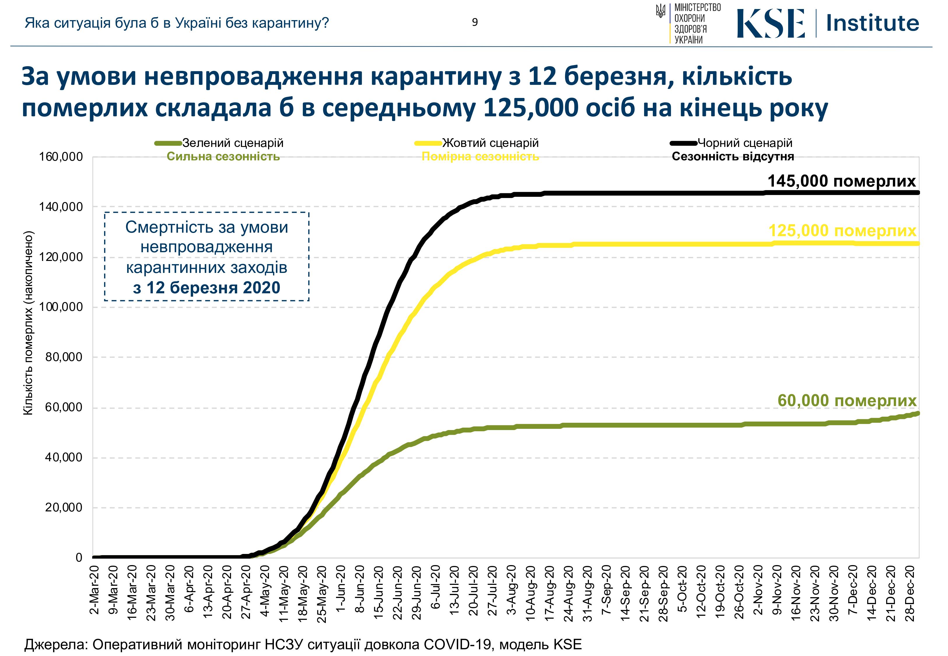 5. Якби карантин не впровадили з 12 березня, кількість померлих складала б в середньому 125 тисячі осіб на кінець року.