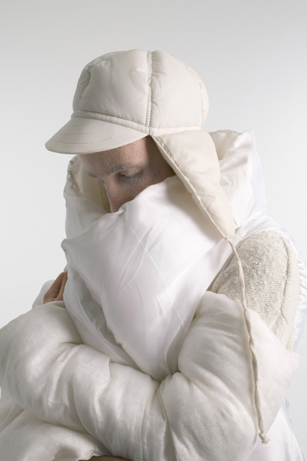Наче поглинуті туманом, м’яко вкриті снігом та заморожені, матеріали будуть злагідливими, самобутніми, більш компактними та тривкими. Спостерігаємо сталу тенденцію до використання природних органічних волокон. Щодо пряжі – набуває сили тренд на пір’яні та пухнасті ефекти, а також на повстяні, матові та багатошарові тканини. Знов повертається в’язаний одяг (безліч нових трикотажних рішень), тканини обіймають та підтримують своїх власників. Здається, одежини ось-ось і самі перетворяться на самостійних соціальних істот.