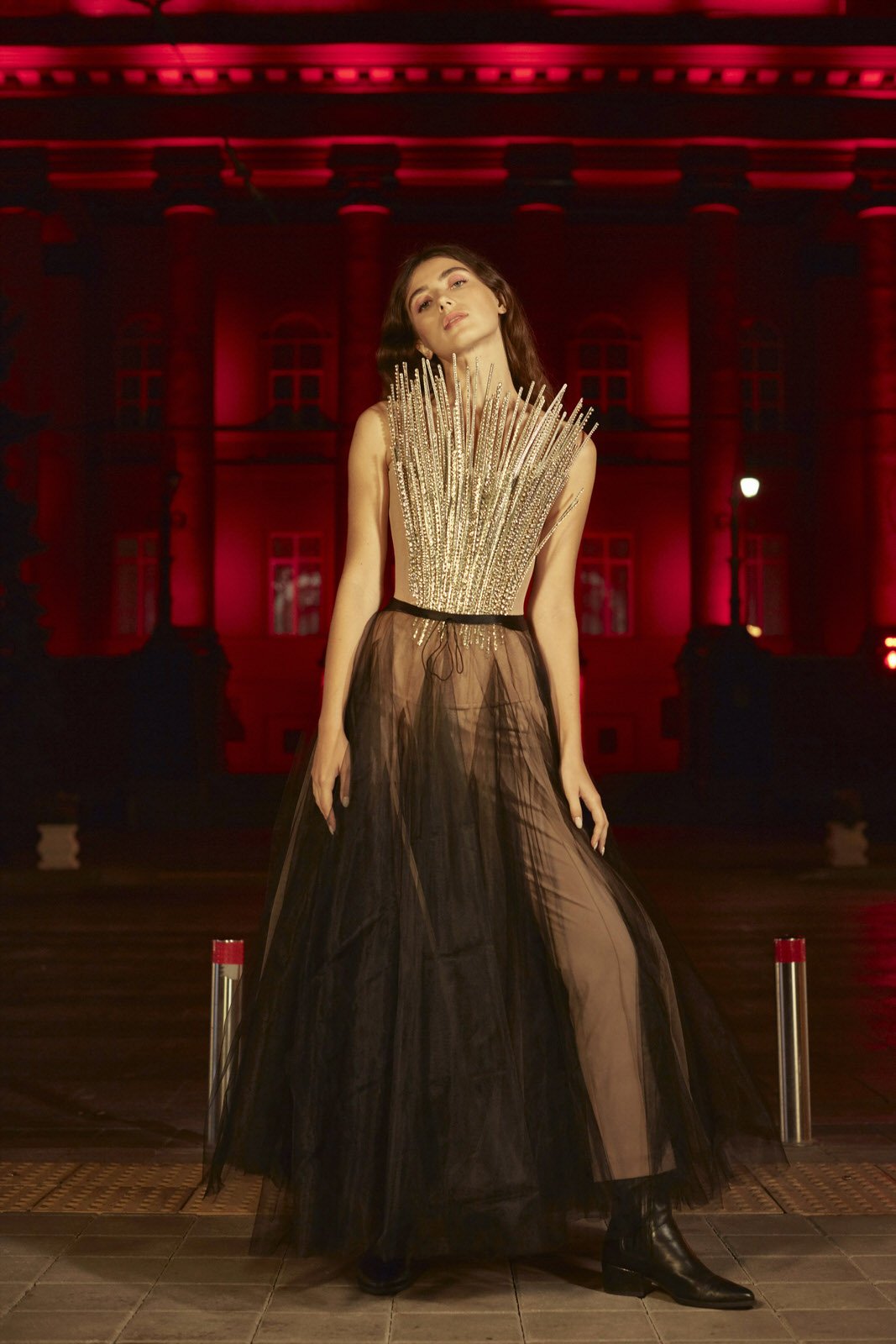 Навіть вечірні луки FROLOV не створені «на один вихід». Сукні можуть ставати maxi, midi чи навіть фраком, брюки легко перетворюються на шорти, пальта – на жакети, а білизну можна надягати задом наперед.