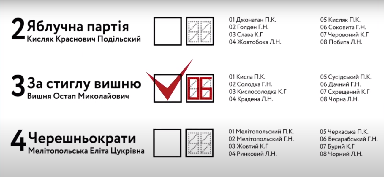 А от там, де понад 10 тисяч виборців, ситуація трохи складніша: в бюлетені буде буде два стовпчики: в одному – список партій, в іншому – списки кандидатів від них.