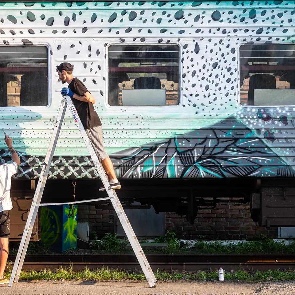 Українські художники з різних куточків України оформляли вагони ззовні у своєму авторському стилі. Куратором став митець із Вінниці Олександр Нікітюк.
