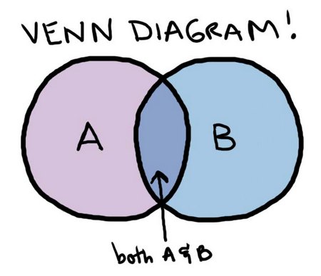 Цей спосіб краще використовувати для порівняння двох понять. Наприклад, вам потрібно розробити логотип і поєднати на ньому зображення єнота і морозива (ми фантазуємо, звісно). Запишіть спершу властивості кожного об’єкта окремо, а після цього – те, що між ними є спільного.