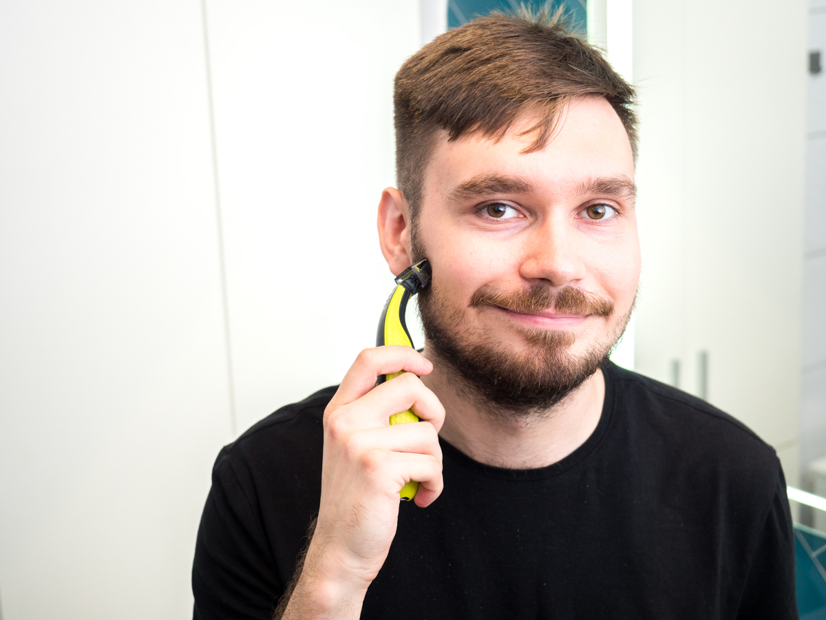 Часто зранку я голюся поспіхом, однак із Philips OneBlade це виходить вдвічі швидше. Голить добре та безпечно, тому що девайс не прилягає надто близько до шкіри. Порівняно зі звичайним станком – небо й земля. Гнучкість головки тримера та двостороннє лезо створюють чіткі контури та рівні лінії. Це важливо, коли щетина вже підросла, і я хочу зробити стайлинг на обличчі.