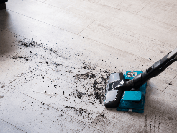 Для підлоги використав насадку з водою та ганчіркою, щоб спочатку пройтися пилососом, а потім помити. У резервуар можна відразу додавати мийний засіб. Волога земля просто зникла в пилозбирачі. Я водив рукою по підлозі, намагаючись зрозуміти, скільки крихітних часток залишилося – а їх не було.
