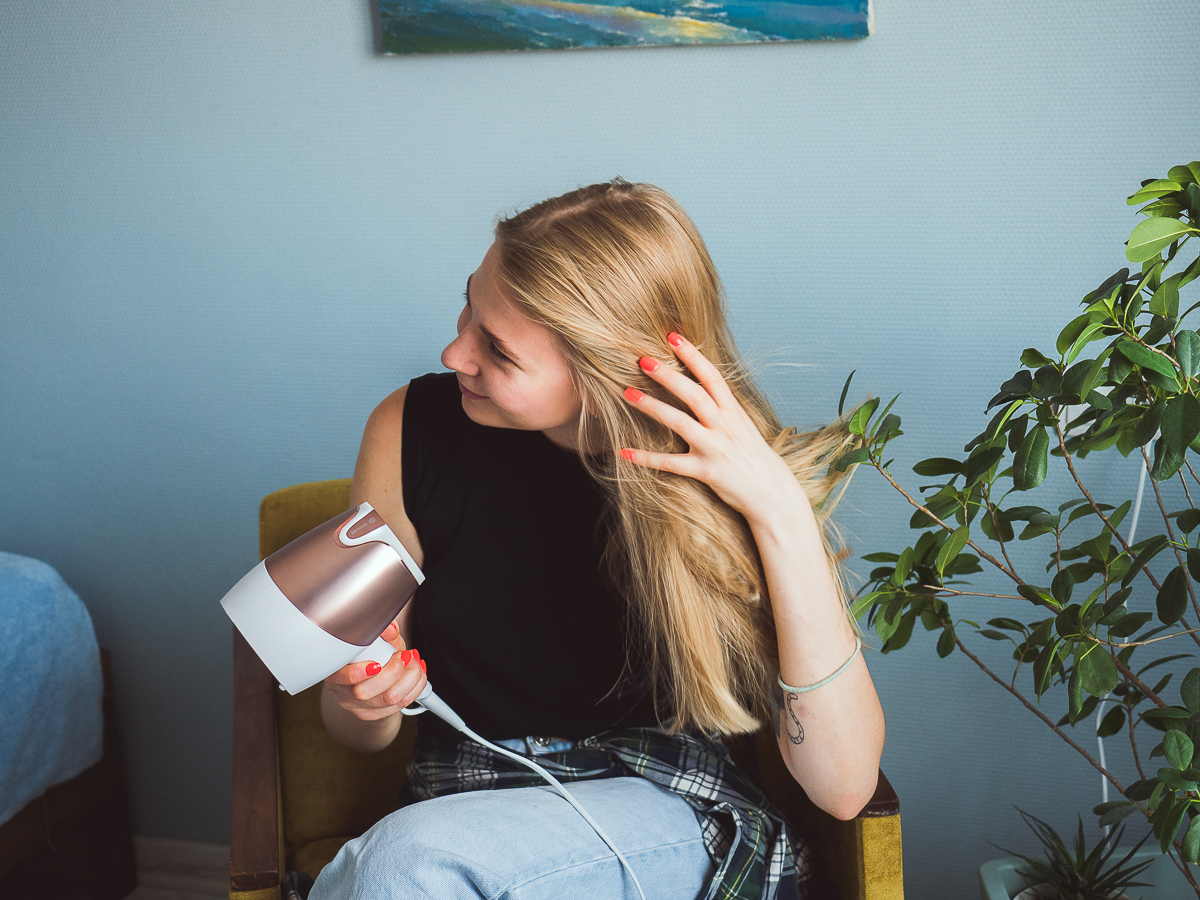 Можу сказати, що це фен, який так само як і я береже моє волосся, зберігаючи природну вологу всередині. Водночас парадоксальним чином я витрачала мінімум часу на сушіння. Відчуваю, що волосся після сушки наповнене вологою й зовсім не наелектризоване. Плюс зручний сенсор, який підбирає температурний режим і силу сушіння. Це дуже зручно!