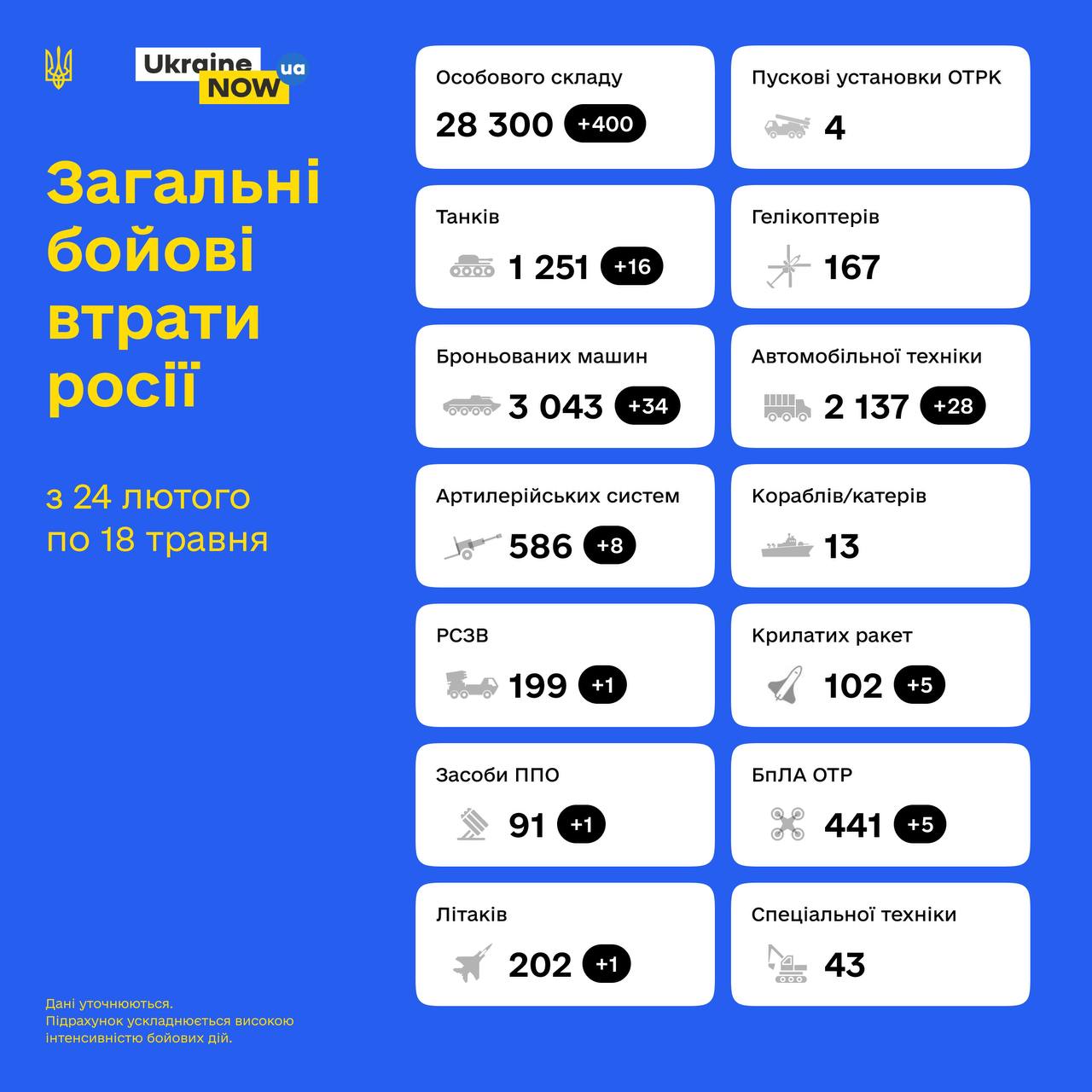 Загальні бойові втрати ворога з 24.02 по 18.05